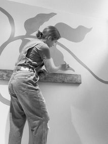 Using colors found elsewhere throughout the home, this boring gray basement wall was transformed to a whimsical playnook. Pulling inspiration from parks of the surrounding area, this floor-to-ceiling plant mural brings this space to life.